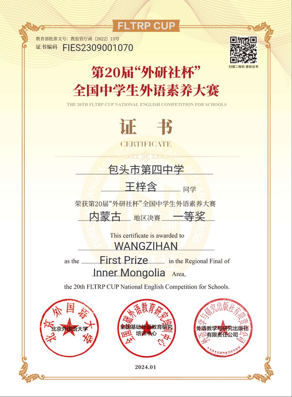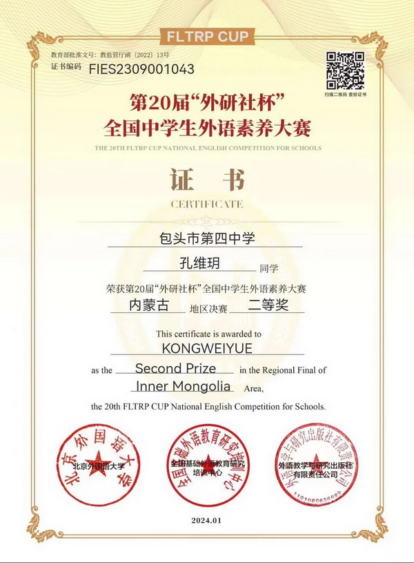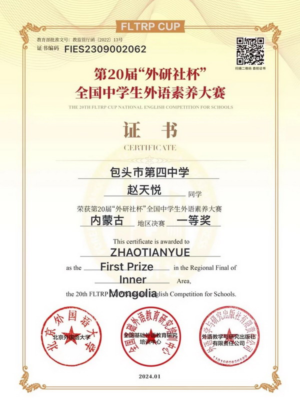 近日,从第20届“外研社杯”全国中学生外语素养大赛传来喜讯,我校学子在该项赛事中斩获佳绩!这一成就既是对参赛学子们外语素养的认可,也是我校外语教学成果最好的证明。