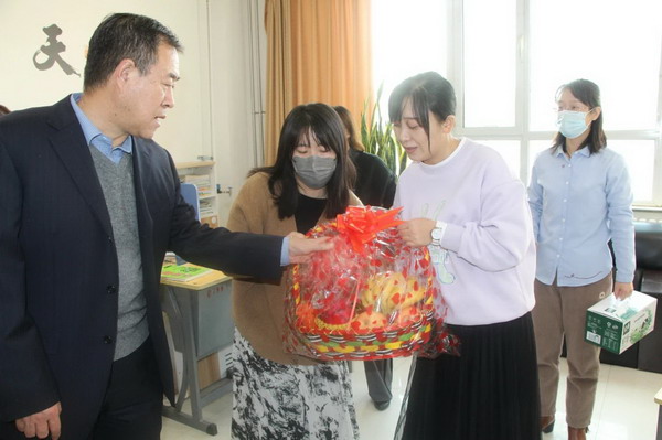 校领导为高三教师送上寓意“硕果累累”的果篮。诚挚的问候和殷切的嘱托,满载着校领导对老师们的深切关心和浓浓期许,必将助力我校2024年高考备考工作再结硕果!