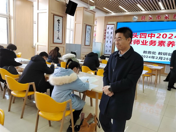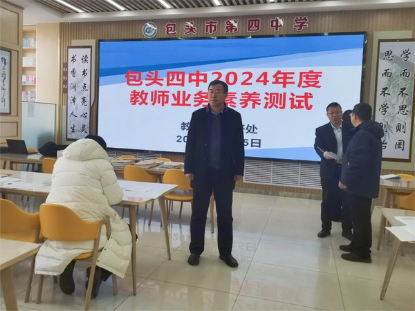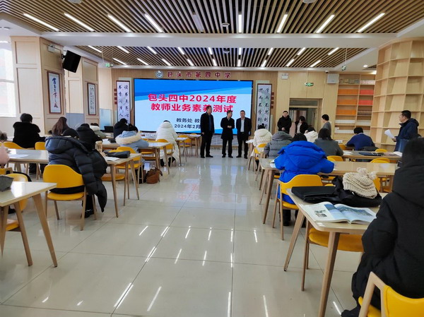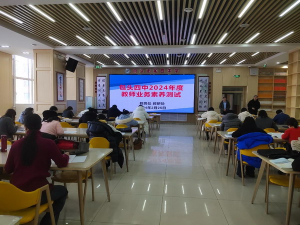 为进一步提升学校教师专业素养和履职能力,适应课程改革要求,帮助教师树立终身学习理念,打造学习型、研究型、创新型教师队伍,2月25日上午,包头四中开展2024年教师业务素养测试。本次测试工作涵盖语文、数学、英语、物理、化学、生物、思想政治、历史、地理、音乐、美术、体育与健康、信息技术共13个学科,全校一线教师全部参加本次素养测试。