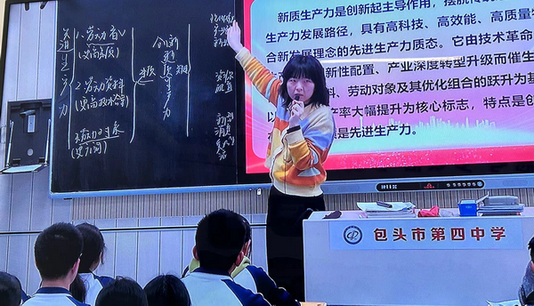 本次活动围绕时政热点“新质生产力”展开。包四中高三政治李雪儿老师展示《商业航天逐梦太空,助力新质生产力》的二轮复习课,李老师从“商业航天探索为我们带来了什么?”开始导入,结合传统生产力三要素分析新质生产力如何具有更高技术含量,开拓更广泛的劳动对象,同时注重知识的整合,结合高考主观题联系必修一等知识进行讲解。学生课前收集有关新质生产力的资料,自己命题,制定答案。这种转换视角,换位思考的教学方式,极大地促进了学生独立思考,提升了学习的自信力,增强了学习思考力,强化学习内生动力。