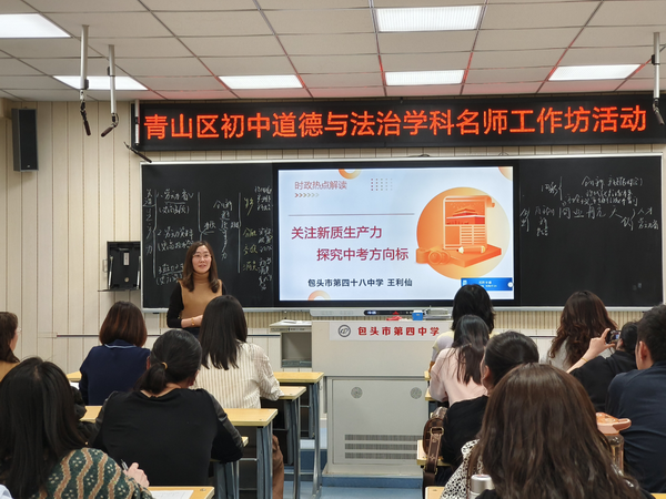 一犁烟雨伴春耕,不负春日好时节。三新背景下,为扎实推进课堂教学改革,助力教师专业成长,深入实施思政课教师能力提升攻坚计划,全面推动大中小思政一体化,精准聚焦教、学、研、考等重点环节,进一步提高教学质量,3月19日下午,青山区大中小思想政治课程一体化工作室活动在包四中开展初高中备考策略研讨会。