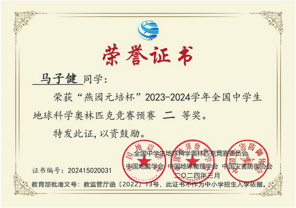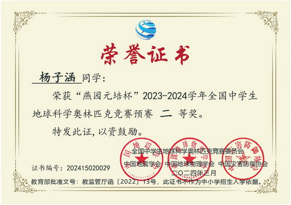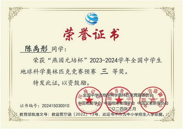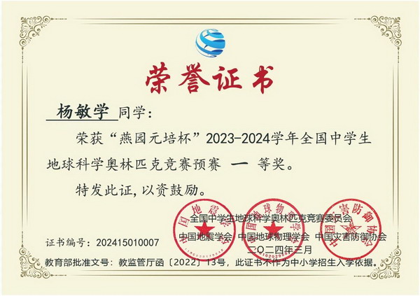 近日,由中国地震学会、中国地球物理学会、中国灾害防御协会主办的“燕园元培杯”2023-2024学年全国中学生地球科学奥林匹克竞赛预赛(内蒙古赛区)落下帷幕。包头市第四中学高一学子在本次比赛中勇创佳绩,在主教练杨波老师的带领下,斩获一等奖4项、二等奖9项、三等奖10项。