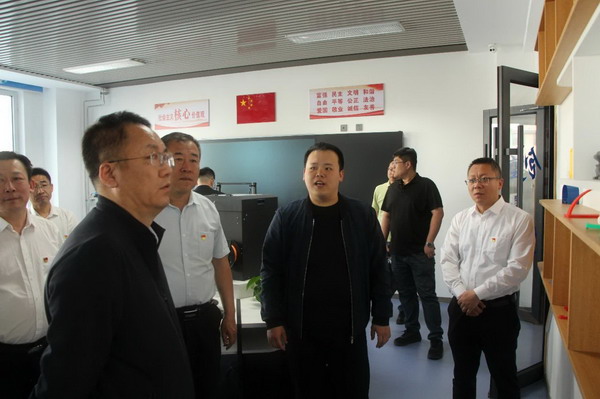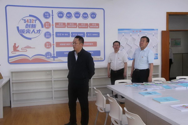 胡海峰局长先后对学校的荣誉展廊、创新实验中心、创客空间、校园书屋、党员先锋备课组、党员责任区等进行实地调研,了解学校的办学情况,与一线师生亲切交谈。胡局长细致询问相关工作的开展情况,并就下一步工作提出了指导性意见。