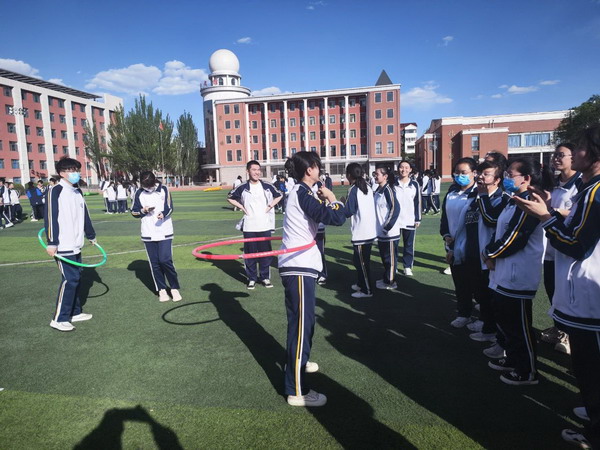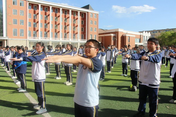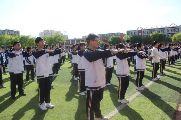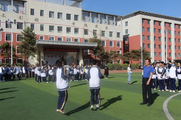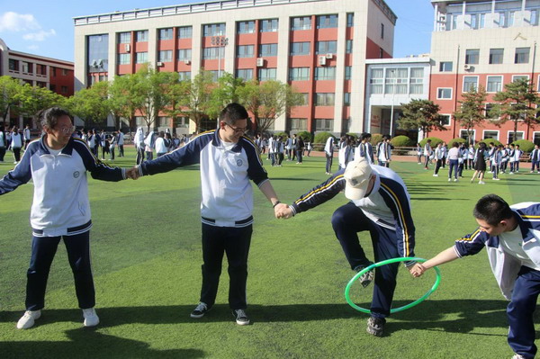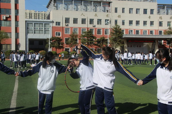 同学们根据前期安排,在德育处副主任李喜文老师的指挥下,进行运动前热身,开始了一场别开生面的趣味释压活动!