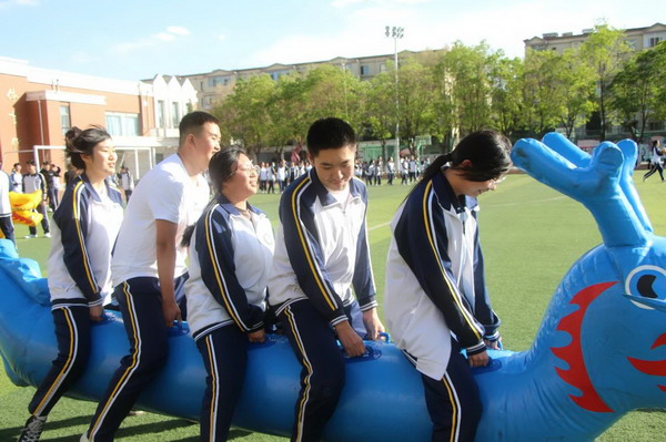 与“绳”共舞,跳出了更快更强的高三追求;旱地龙舟,“划”出了永不服输的高三品格;抱球狂奔,跑出了温馨有爱的高三温情;一“圈”到底,亮出了凝心聚力的高三风貌……整场活动掌声与笑声此起彼伏,展现了一幕幕师生互动、轻松愉快的精彩画面。