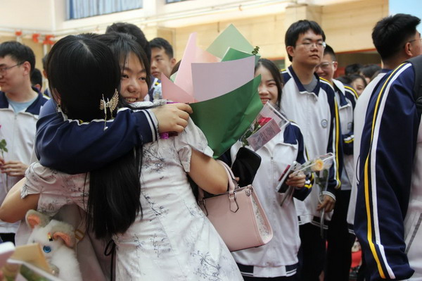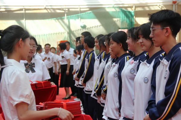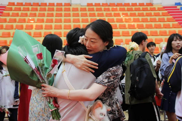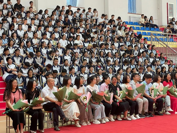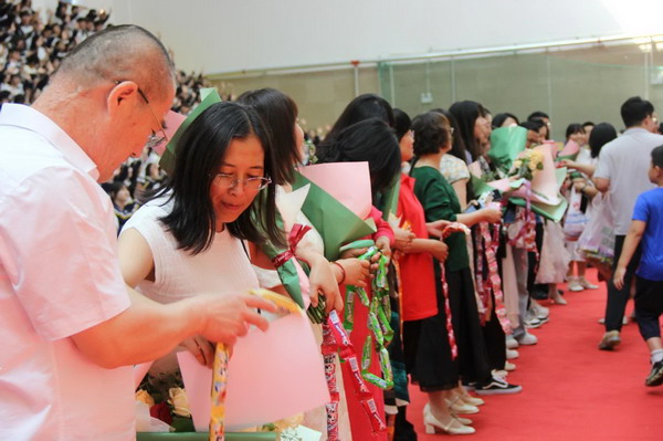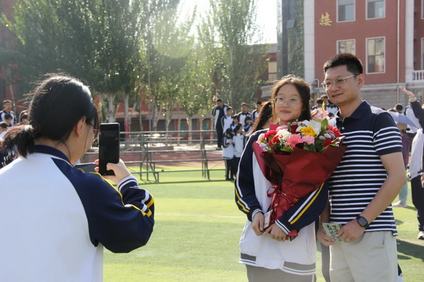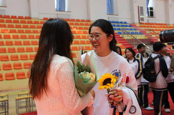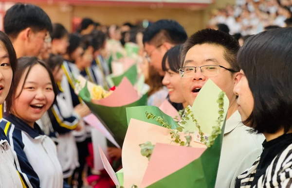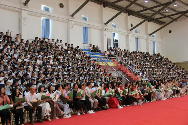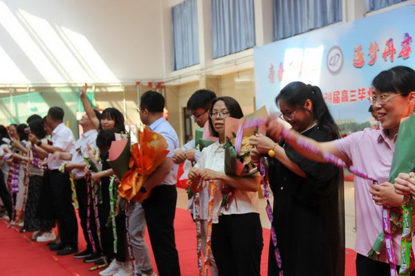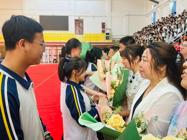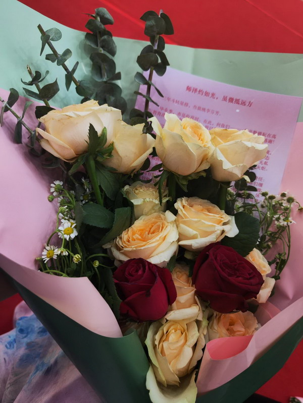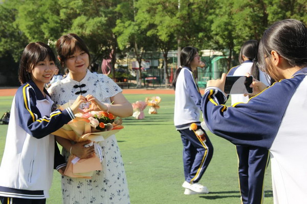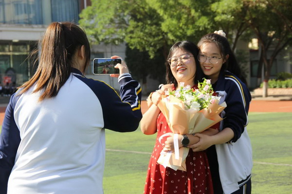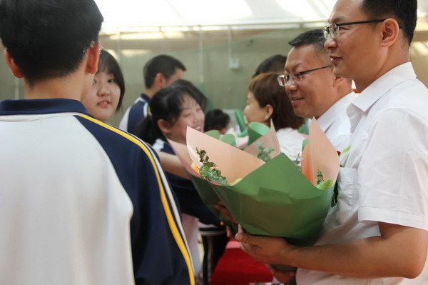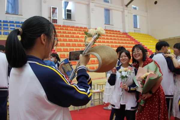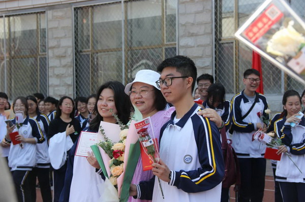 离别之际,高三学子将浓浓师生情、款款尊师意化作深深一躬,并向陪伴三载的恩师们献上了最美的鲜花,来表达心中对老师的无限敬爱和感激。