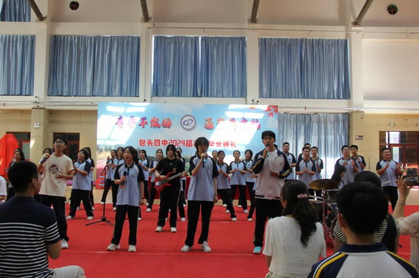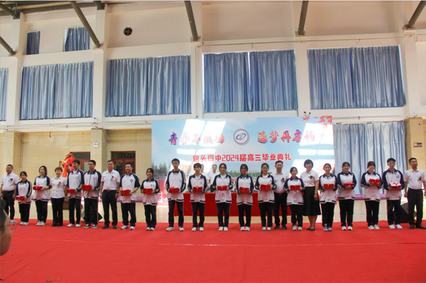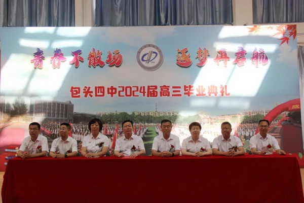 张雪峰书记宣读《包头市第四中学关于准予2024届学生毕业的决定》,并向同学们表示热烈的祝贺。学校领导为2024届学子颁发毕业证书。