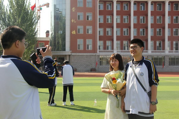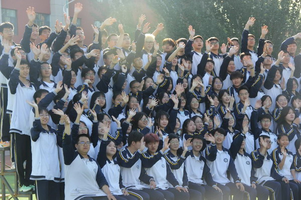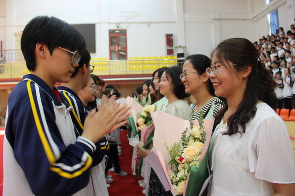 高三学子为全体教师献花