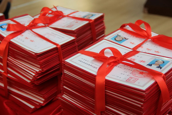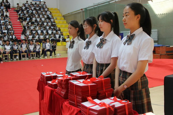 学校领导为学生颁发毕业证书
