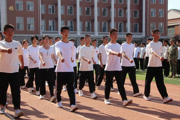 同学们神情坚毅,目光笃定,清脆的呐喊如破空之剑,挺拔的身姿似巍巍大山。军训期间,四中学子严格要求自己,以顽强拼搏的作风和乐于吃苦的精神顺利完成了训练任务。“为学校争光!”整齐划一、铿锵有力的回答,响彻云霄!