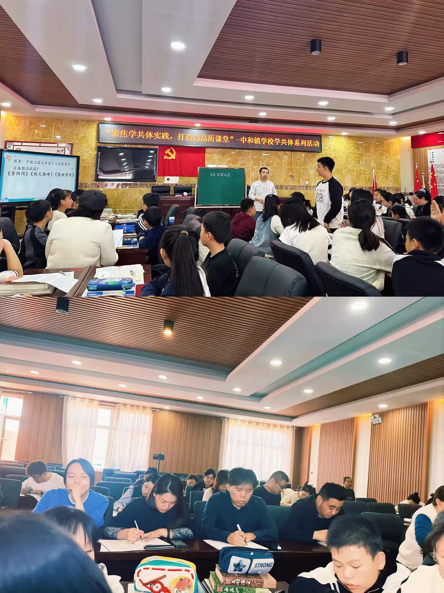为深入推进学习共同体教学模式落地实施,构建以学生为中心、高效灵动的高品质课堂,夯实学校教研基础,提升整体教学质量,中和镇学校冯训海校长、分管教学副校长贾宝昌带领教务处精心策划、统筹推进学共体课堂示范课系列活动。我校公开教研活动于3月31日(星期二)下午第一节课在会议室顺利举行,校领导及全校教师齐聚一堂,共研教学新思路,以扎实的教研行动推动学共体教学走深走实。
