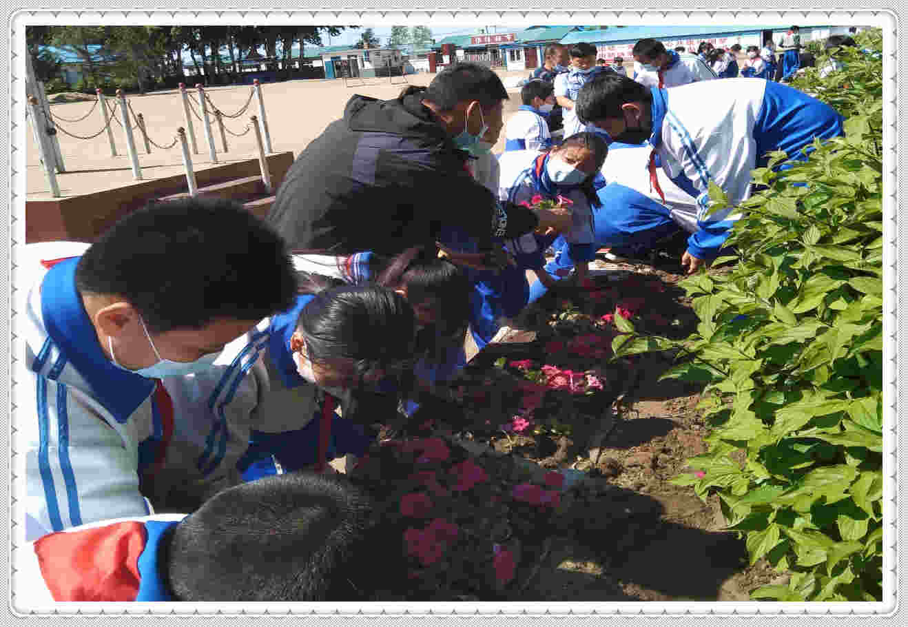 整个活动过程中师生们都主动积极,干得热火朝天、有条不紊:男老师教学生用铁锹挖坑,女老师指导学生栽花。不管是用工具还是用手,师生个个都不怕脏不怕累、认真细致、干劲十足。栽完花,在老师的带领下,学生们又对校园边角杂草进行了一次彻底的清除。历经两个小时,校园迎来新面貌。
